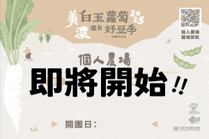 - 一、本會網站所公開刊載的個人農場動態,僅為宣傳服務性質。想要體驗拔蘿蔔或毛豆的朋友們,請依個人農場的交通位置、收成時間自行與個人農場的農民聯繫預約。 如因老天不作美,個人農場收成順利與否,煩請自行與農民接洽。